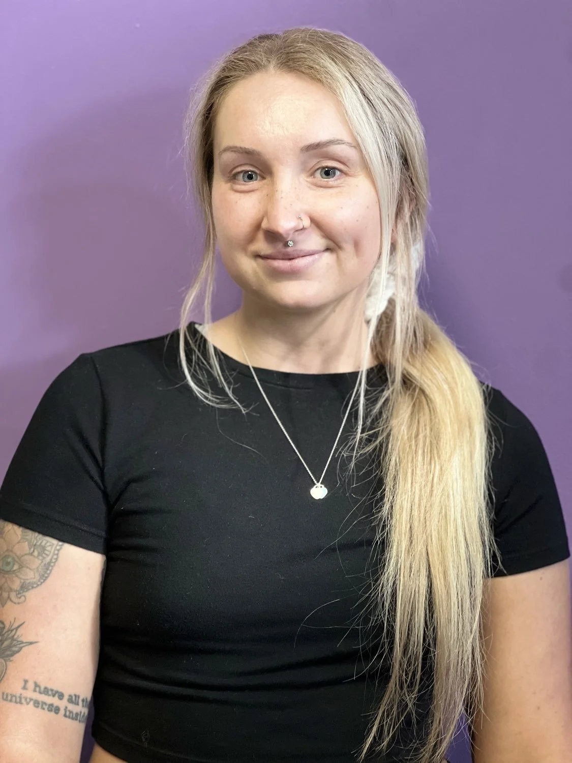 Ariana, our Lead Bather, has been in the pet industry since 2018 and is a familiar face to many, having worked at Awesome Paws a few years ago. Her favorite part of the job is the moment an animal begins to trust her, as she finds great satisfaction in building relationships and proving that her goal is to help and care for them. Over the years, Ariana has taken on multiple leadership roles, a testament to her dedication and skill. She especially loves working with pitties and bullies, appreciating their strong, affectionate nature. Ariana is committed to making every pet feel safe and cared for. -